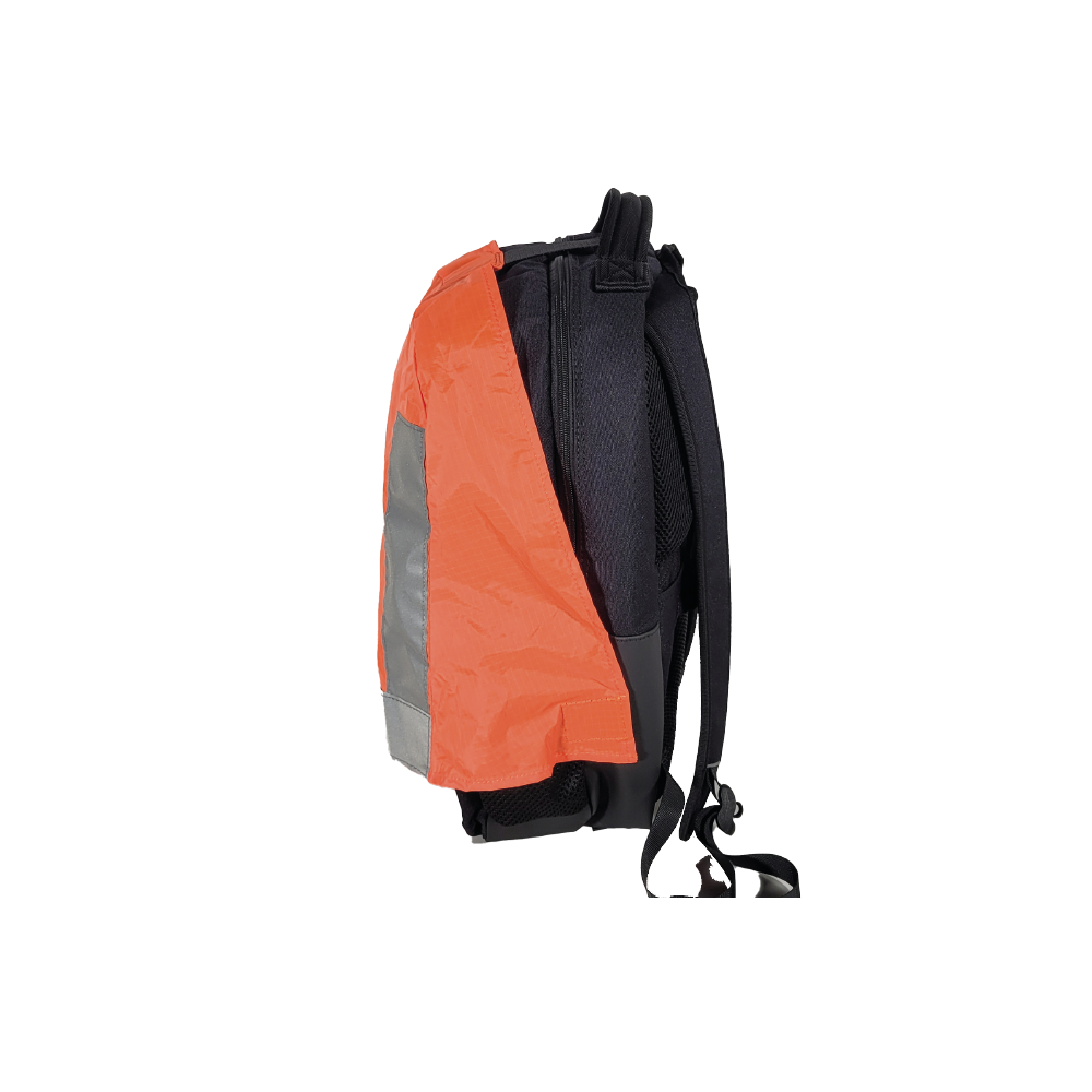Die orangefarbene Warnhaube für den MOBI-Rucksack und die MOBI-Rolltasche erhöht deine Sicherheit durch bessere Sichtbarkeit bei schlechten Lichtverhältnissen.