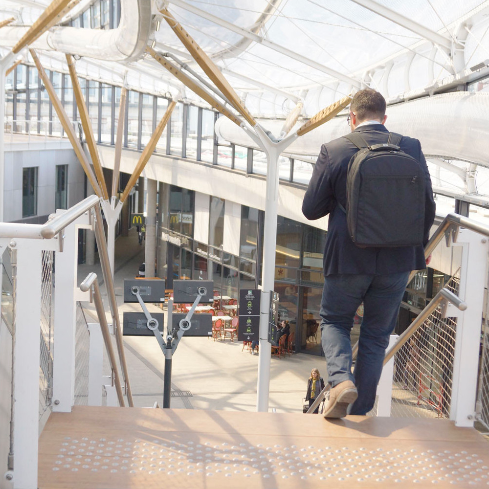 Hergestellt aus Oeko-Tex-zertifiziertem 900D-Polyester, ist dieser robuste und ergonomische Rucksack besonders langlebig und bietet dank der verstaubaren Schultergurte optimalen Tragekomfort.