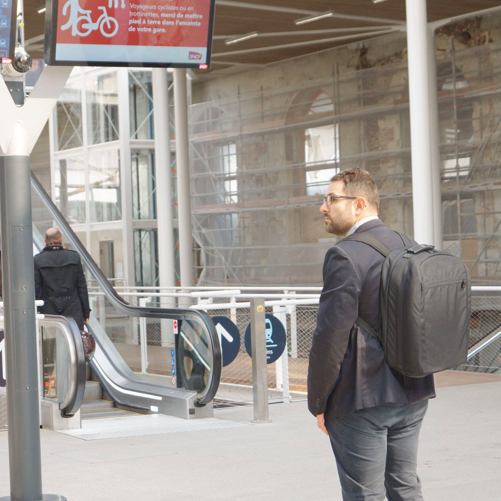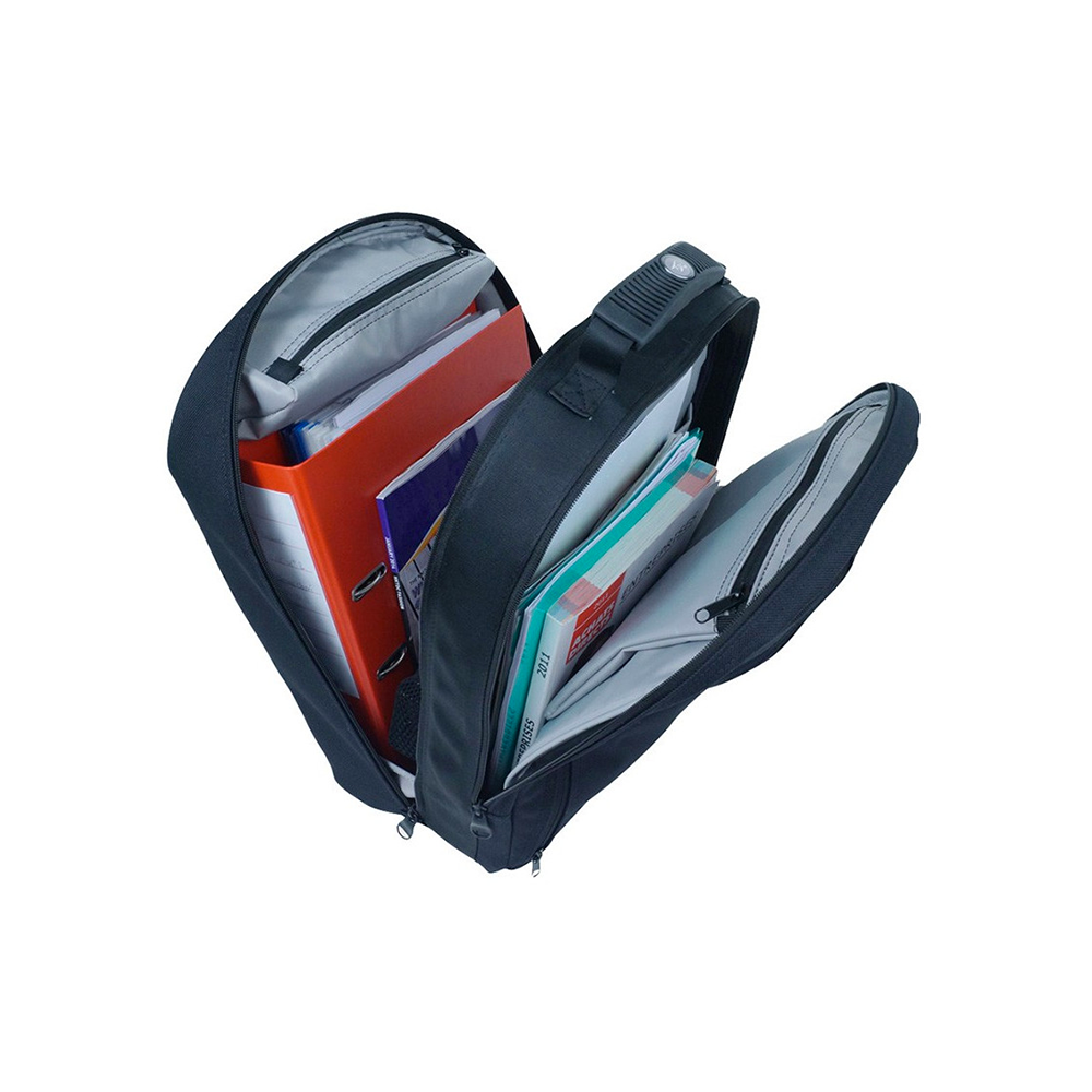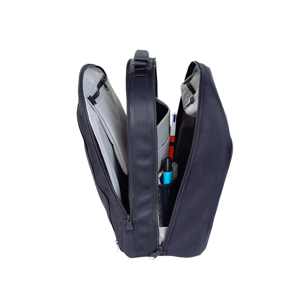 Mit einem Fassungsvermögen von 21 Litern verfügt er über ein verstärktes, mit Filz ausgekleidetes Fach für einen Laptop (bis zu 15"), ein zweites Fach für persönliche Gegenstände und Dokumente sowie integrierte Taschen für Schlüssel, Telefon und Schreibutensilien.