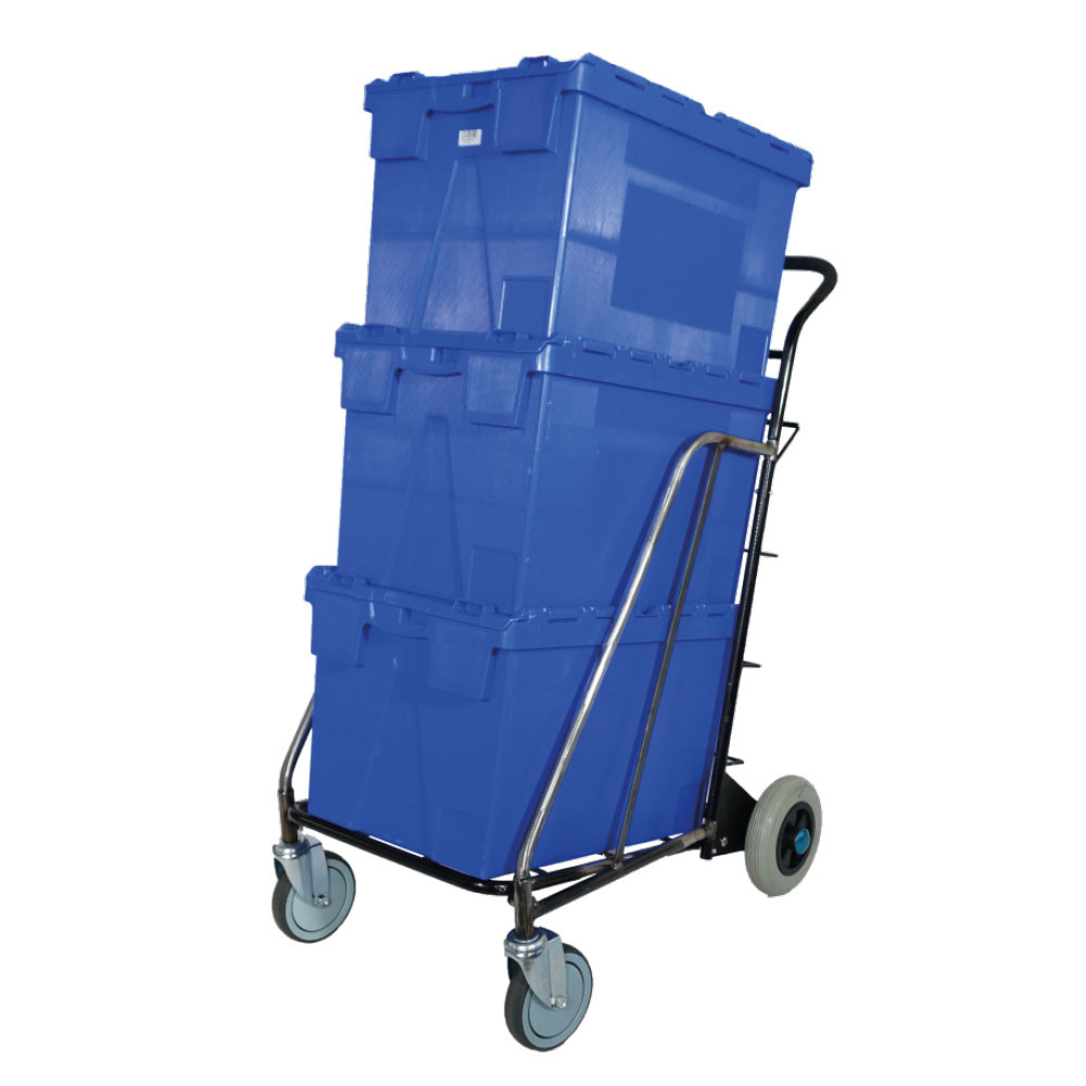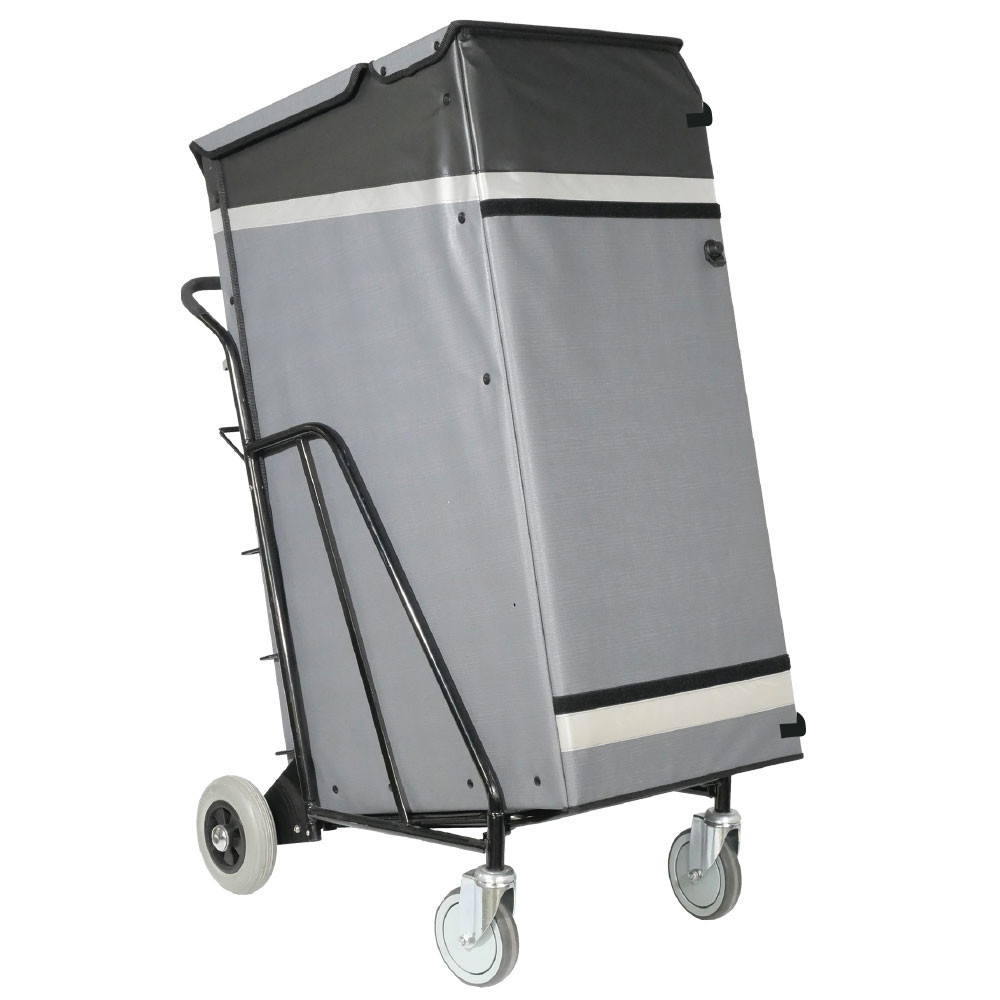 Optional ist der Wagen mit einem starren Behälter oder einer flexiblen Schutzhülle erhältlich – für maximale Vielseitigkeit im täglichen Einsatz.