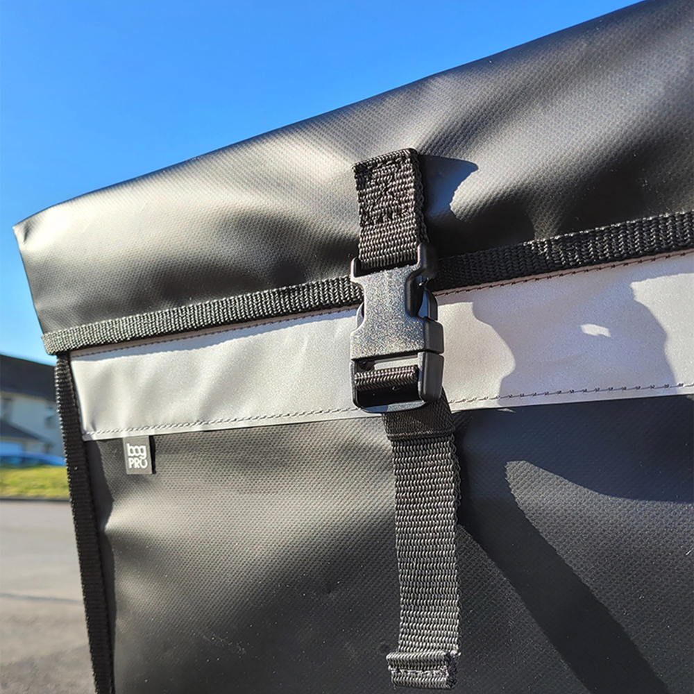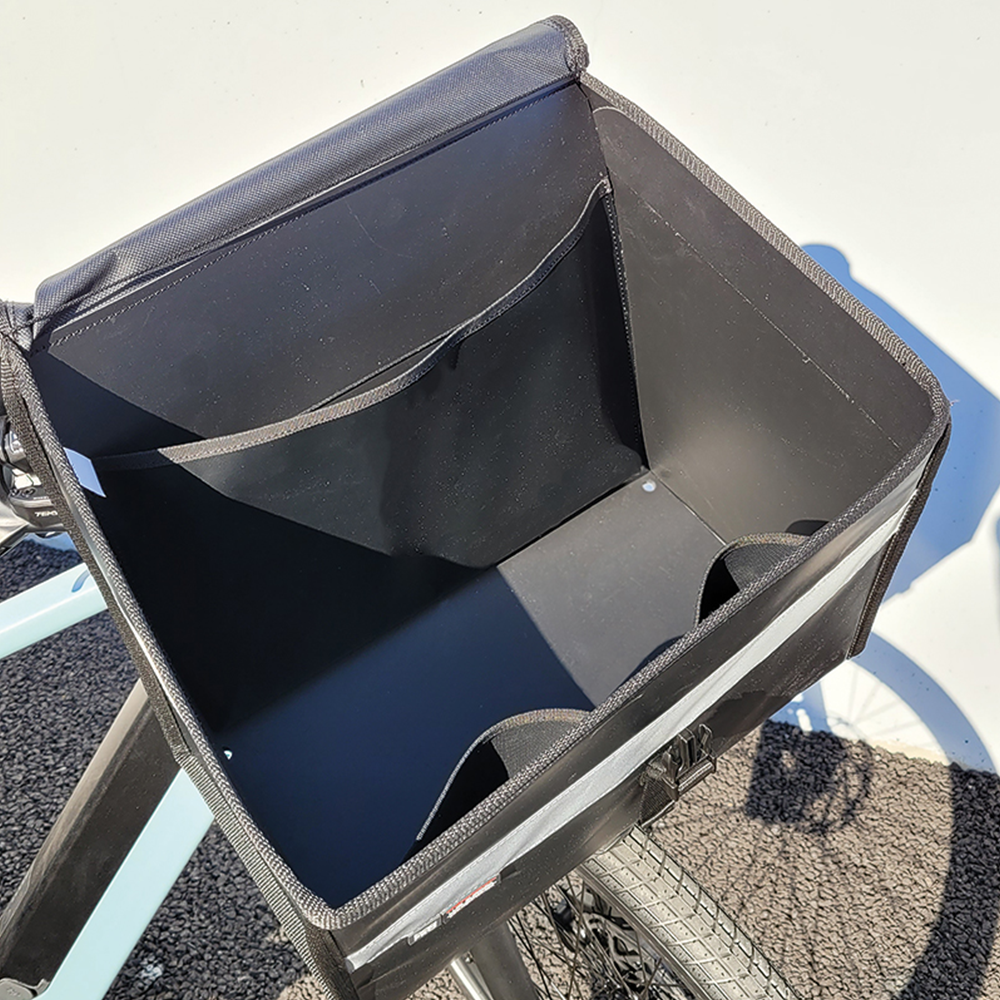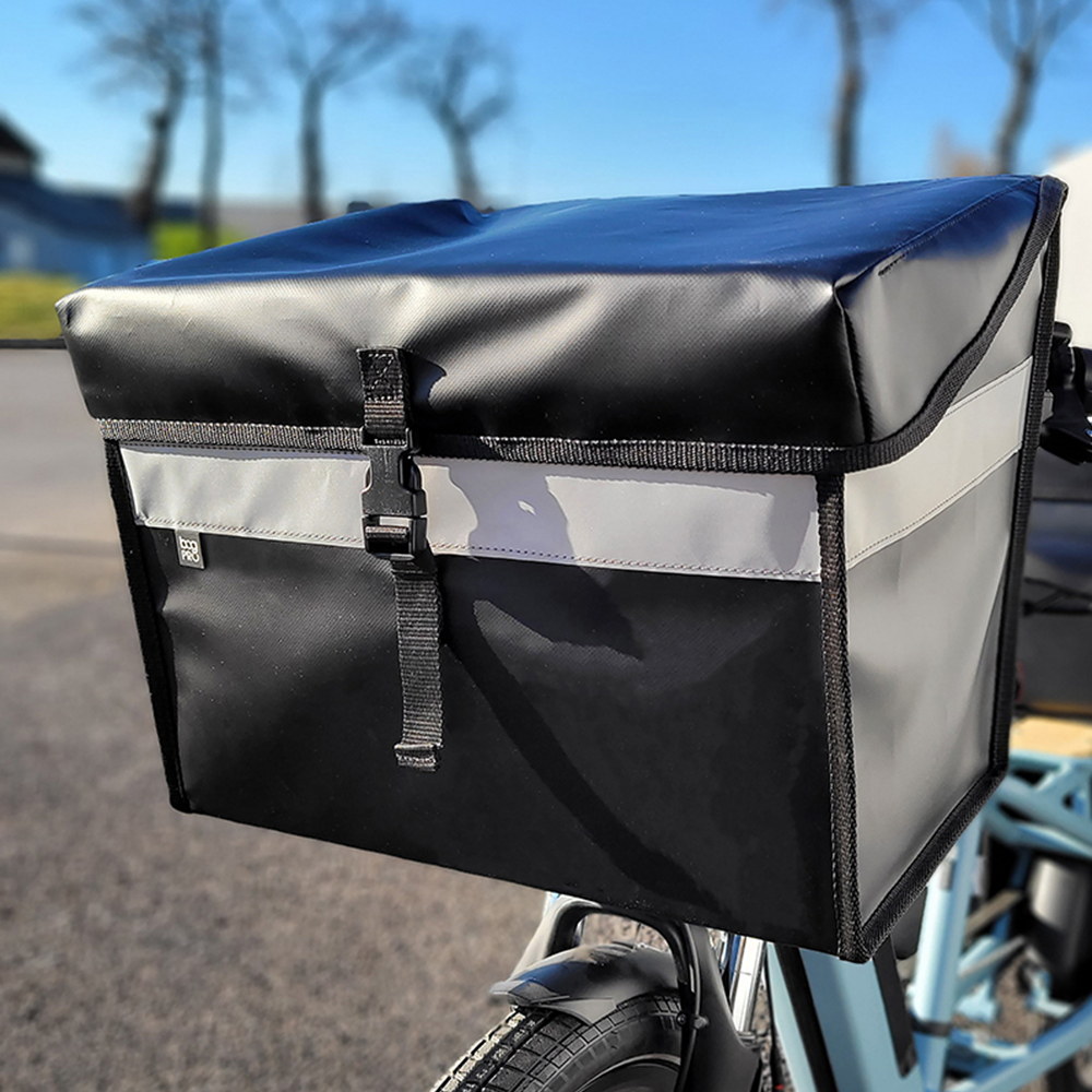 Mit einem Fassungsvermögen von 40 Litern wird sie an der Vorderseite des Fahrrads befestigt und bietet leichten Zugriff sowie Schutz vor Witterungseinflüssen dank ihres Clip-Verschluss-Systems.