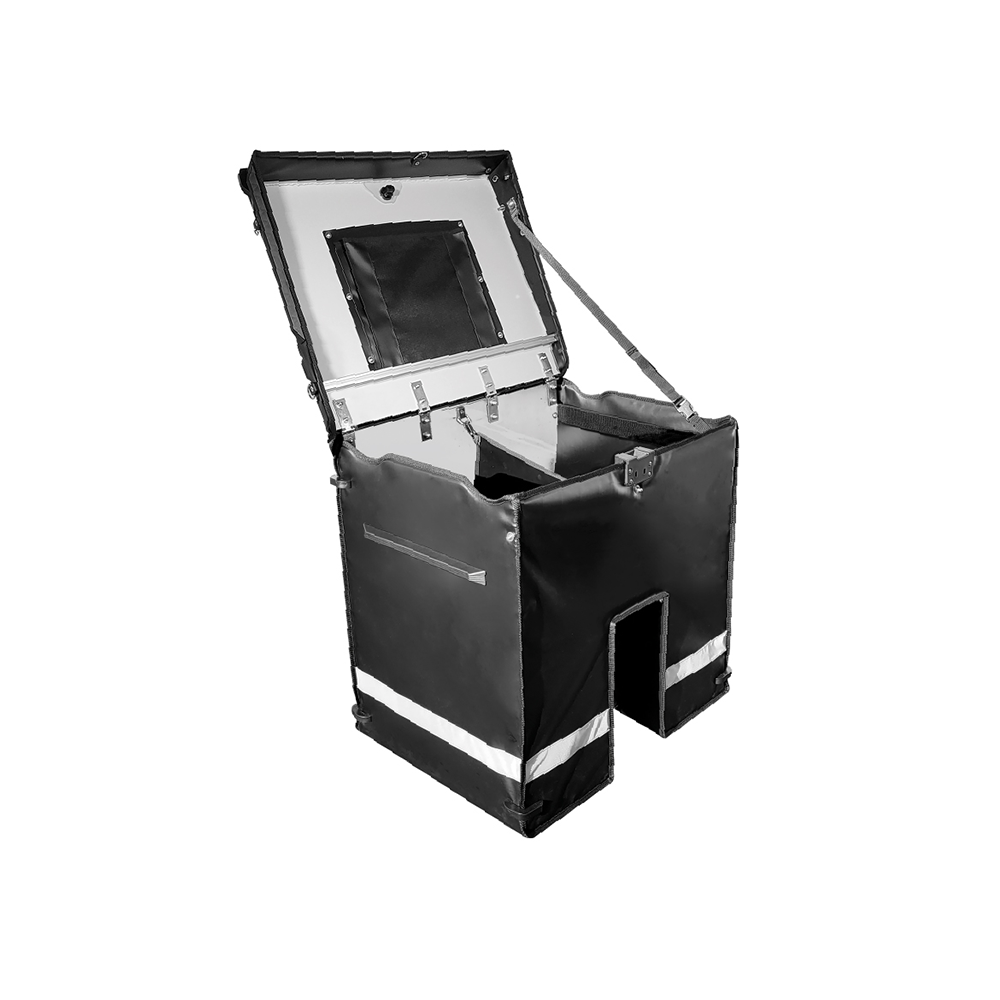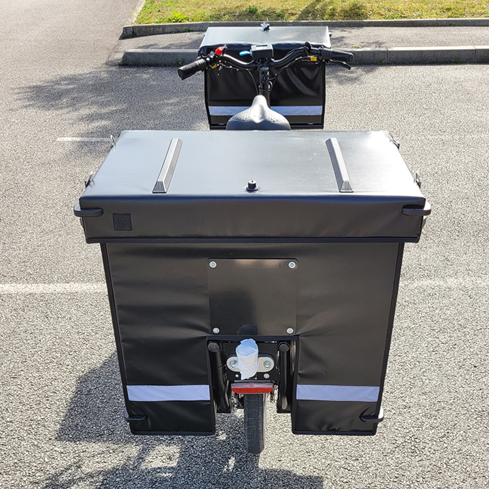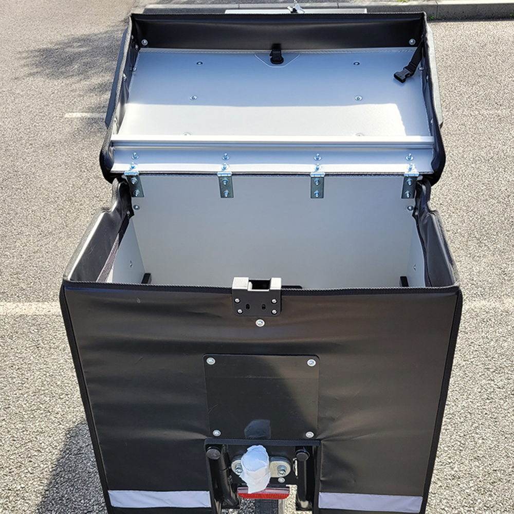Entdecken Sie die URBAN DELIVERY, den idealen Container für Longtails mit einem Fassungsvermögen von 270 Litern. Perfekt auf die Geometrie des Longtails abgestimmt, ermöglicht er durch seine komplett zu öffnende Klappe einen leichten Zugriff auf den gesamten Inhalt. Hergestellt aus stabilen Paneelen und PVC-Plane, ist dieser robuste Behälter nur 12 kg schwer und trägt bis zu 60 kg Zuladung. Ausgestattet mit einem Schlüsselschloss garantiert er die optimale Sicherheit Ihrer Sendungen.