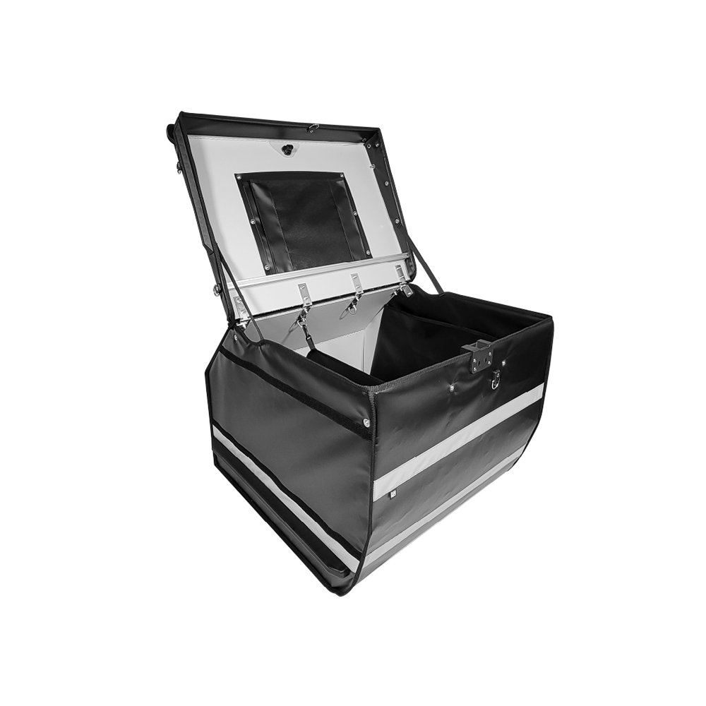 Eine optionale herausnehmbare Trennwand erleichtert die Gewichtsverteilung und schützt sowohl den Inhalt als auch den Fahrer effektiv.